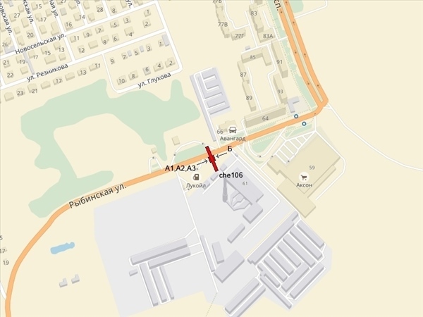 Рыбинская ул., за АЗС "Руснефть", напротив АЗС "Лукойл", 80м до гипермаркета "АКСОН", въезд со стороны Ярославля, справа при движении в центр